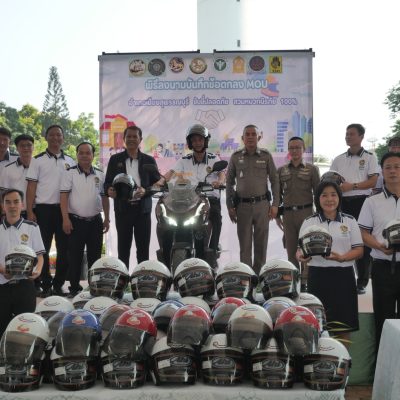 นำร่อง “โครงการอำเภอเมืองสุพรรณบุรี ขับขี่ปลอดภัย สวมหมวกนิรภัย ๑๐๐%
