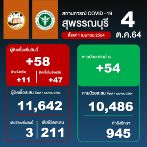 วันนี้ (4 ต.ค.64) คณะกรรมการโรคติดต่อจังหวัดสุพรรณบุรี เปิดเ อ่านต่อ >>