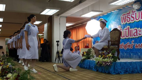 การรับหมวกประดับเข็มชั้นปี เพื่อเตรียมความพร้อมเข้าสู่ ก้าวแรกวิชาชีพของนักศึกษา หลักสูตรพยาบาลศาสตรบัณฑิต รุ่นที่ 8 ของมหาวิทยาลัยราชภัฏนครปฐม ซึ่งได้เดินทางมาถึงครึ่งทางของการศึกษา ซึ่งหลังจากนี้ นักศึกษาหลักสูตรพยาบาลศาสตรบัณฑิตรุ่นที่ 8 ก็จะออกฝึกงานในชุมชน และฝึกงานในสถานพยาบาล กับชุมชนและผู้เจ็บป่วยจริง ต่อไป…