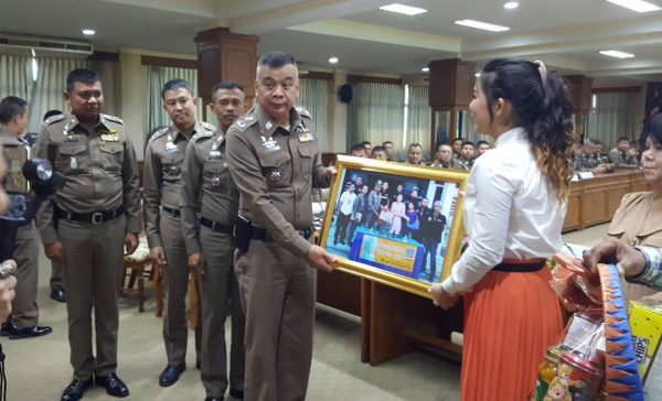 เมื่อเวลา 09.36 น.วันที่ 14 ธันวาคม 2561 ที่ห้องประชุมชั้น 3 องค์การบริหารส่วนจังหวัดนครปฐมตำบลสนามจันทร์ อำเภอเมือง จังหวัดนครปฐม ซึ่งเป็นที่ประชุมบริหารประจำเดือน ของตำรวจภูธรจังหวัดนครปฐม นางชรินทร์ทิพย์ รัตนินพรกุล เจ้าของ โรงงาน ทิพย์นิรมิต แกะสลักพระหิน พร้อมด้วย นางสาว ศรุดา รัตนินพรกุล (ลูกสาว)และ นายวสุศุภณัฏฐ์ รัตนินพรกุล (ลูกชาย)เจ้าของทรัพย์ทรัพย์ถูกคนร้ายก่อเหตุ ได้เข้าแสดงความขอบคุณ เจ้าหน้าที่ตำรวจภูธร นครชัยศรี โดยได้เข้าแสดงความขอบคุณ ต่อหน้าที่ประชุม ซึ่งมี พลตำรวจตรี คำรณ บุญเลิศ ผู้บังคับการ ตำรวจภูธรจังหวัดนครปฐม เป็นประธานการประชุม พร้อมทั้งรองผู้บังคับการ ผู้กำกับการ หัวหน้าสถานี ในสังกัดตำรวจภูธรจังหวัดนครปฐมทุกสถานี ที่เข้าร่วมประชุม