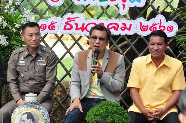 ณ ศูนย์ศึกษาวิธีการฟื้นฟูที่ดินเสื่อมโทรมเขาชะงุ้ม อันเนื่องมาจากพระราชดำริ อำเภอโพธาราม จังหวัดราชบุรี มีหัวหน้าส่วนราชการ หน่วยงานที่เกี่ยวข้องเข้าร่วมแถลงข่าวในครั้งนี้
