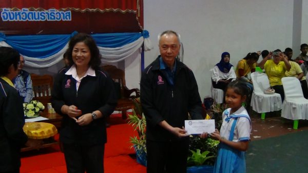 สำหรับพิธีมอบทุนการศึกษาให้แก่นักเรียน เยาวชน และนักศึกษา ในจังหวัดปัตตานี ยะลา และนราธิวาส ทั้งหมด 60 ทุน ทุนละ 5,000 บาท รวมเป็นเงิน 300,000 บาท มอบให้กับนักเรียน ตั้งแต่ระดับอนุบาล – อนุปริญญา ซึ่งเป็นนักเรียนเรียนดีแต่ขาดทุนทรัพย์ นักเรียนที่ได้รับผลกระทบจากสถานการณ์ความไม่สงบในพื้นที่ 3 จังหวัดชายแดนภาคใต้ และเป็นนักกีฬาของโรงเรียน พร้อมเยี่ยมชมการดำเนินงาน กิจกรรมทางด้านกีฬาโดยเฉพาะกีฬาฮอกกี้ ในโครงการสานฝันการกีฬา สู่ระบบการศึกษาจังหวัดชายแดนใต้ ของโรงเรียนรือเสาะชนูปถัมภ์อีกด้วย