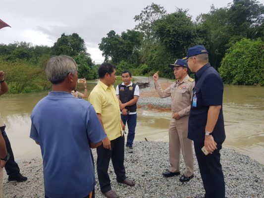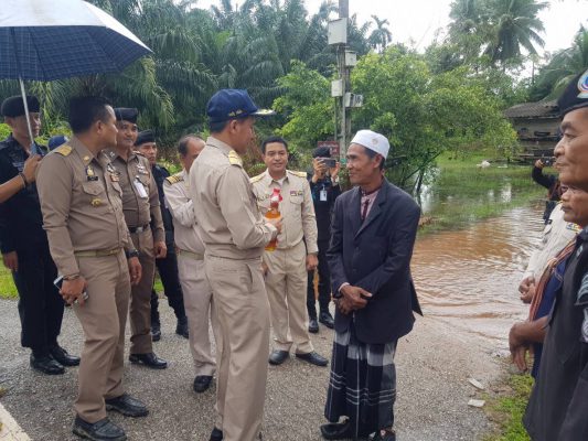 วันนี้ 17 ธ.ค.61 เวลา 15.00 น. นายเอกรัฐ หลีเส็น ผู้ว่าราชการจังหวัดนราธิวาส ในฐานะผู้บัญชาการศูนย์บัญชาการเหตุการณ์จังหวัดนราธิวาส (อุทกภัย วาตภัยและดินถล่ม ) พร้อมด้วยพันโทนภดล พรหมมาก รองผู้บังคับการหน่วยเฉพาะกิจ กรมทหารพราน ที่ 48 นายเถลิงศักดิ์ ภูวญาณพงศ์ หัวหน้าป้องกันและบรรเทาสาธารณภัยจังหวัดนราธิวาส ในฐานะเลขาศูนย์บัญชาการเหตุการณ์จังหวัดนราธิวาส (อุทกภัย วาตภัยและดินถล่ม ) นายรุ่งเรือง ธิมาบุตร นายอำเภอสุไหงปาดี ลงพื้นที่ตรวจเยี่ยมสถานการณ์อุทกภัย ในพื้นที่หมู่ 7 บ้านปิเหล็ง ต.โคกสะตอ อ.สุไหงปาดี จ.นราธิวาส ซึ่งพบว่าบริเวณบ้านเรือนประชาชน และพื้นที่การเกษตรมีน้ำท่วมขังเป็นบริเวณกว้าง