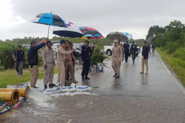 จากนั้นผู้ว่าราชการจังหวัดนราธิวาสพร้อมคณะเดินทางไปยังหมู่บ้านบาโงดุดง ม.6 อ.เจาะไอร้อง จ.นราธิวาส เพื่อตรวจสอบการระบายน้ำบริเวณสวนปาล์มและบริเวณโรงเรียนราชภักดี ขณะที่ผู้ว่าราชการจังหวัดนราธิวาสเน้นย้ำเร่งระบายน้ำออกพื้นที่ดังกล่าวอย่างเร่ง ด่วน และจากกระแสน้ำเชี่ยวกราด ส่งผลให้สะพานภายในหมู่บ้านถูกตัดขาด ทำให้ประชาชนไม่สามารถสัญจรไปมาได้ ซึ่งผู้ว่าราชการจังหวัดนราธิวาสสั่งการให้หน่วยที่เกี่ยวข้องลงพื้นที่แก้ไขปัญหา ซ่อมแซมถนนหนทาง เพื่อให้ประชาชนสามารถใช้เส้นทางสัญจรไปมาได้อย่างสะดวก