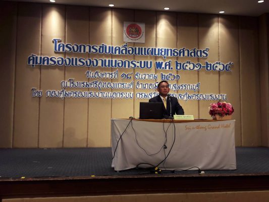 ซึ่งจัดโดยกองคุ้มครองแรงงานนอกระบบ กรมสวัสดิการและคุ้มครองแรงงาน พร้อมเน้นย้ำว่า ทำงานอย่างไรให้มีความสุข ครอบคลุมถึงสิทธิประโยชน์ขั้นพื้นฐานที่พึงได้รับ ตามแผนยุทธศาสตร์ชาติระยะ 20 ปีฯ ด้านการสร้าง ความสามารถ ในการแข่งขันของประเทศ และด้านการสร้างโอกาสและความเสมอภาคทางสังคม รวมถึงแผนพัฒนาเศรษฐกิจและสังคมแห่งชาติ ฉบับที่ 12 “นโยบายเน้นหนัก 3 (A)” ได้แก่ 1) นโยบายเร่งด่วน (Agenda Based) ข้อที่ 13 ขยายการบูรณาการเครือข่ายในการส่งเสริม คุ้มครองและ พัฒนาแรงงานนอกระบบ2)นโยบายการบริหารพัฒนา(Administration Based) เร่งรัดทบทวนและ ปรับปรุงการออกกฎหมายชั้นพระราชบัญญัติและกฎหมายลาดับรองเพื่อแก้ไขปัญหาแรงงาน 3)นโยบาย ระดับพื้นที่ (Area Based) ในการบูรณาการการทางานระหว่างหน่วยงานและภาคีเครือข่าย (One plan) โดยเน้นการมี ส่วนร่วม“หลักปรัชญาเศรษฐกิจพอเพียง” และกลไกประชารัฐเป็นโมเดลสาลำคัญที่สามารถนำไปสู่ การปฏิรูปแรงงานนอกระบบได้อย่างมีประสิทธิภาพ