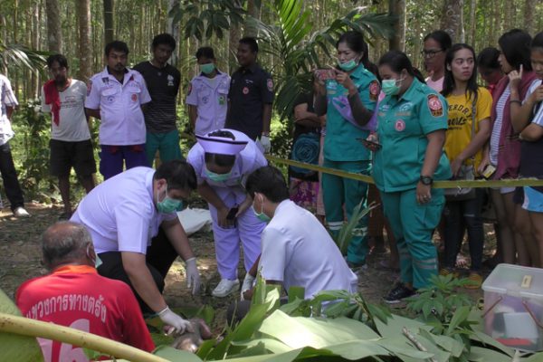 ร.ต.อ.สมพงษ์ สุดฉิม พนักงานสอบสวน สภ.นาโยง รับแจ้งว่า มีคนพบศพทารกนอนคว่ำหน้าเสียชีวิตอยู่ภายในสระน้ำ หลังบ้านของนางนวย สุขหอม อายุ 66 ปี เลขที่ 113 หมู่ที่ 3 บ้านหนักไทร ต.ช่อง อ.นาโยง จ.ตรัง จึงแจ้งประสานแพทย์เวรรพ.นาโยง และกู้ภัยมูลนิธิกุศลสถานตรัง เข้าไปตรวจสอบ ในที่เกิดเหตุเป็นสระน้ำขนาดเล็ก เจ้าหน้าที่นำเชือกมากั้น จากนั้นได้อุ้มร่างของทารกแรกเกิดรายดังกล่าวขึ้นมาตรวจสอบ ซึ่งเป็นที่สลดใจอย่างยิ่ง เนื่องจากทารกรายดังกล่าว ยังอยู่ในสภาพสายสะดือและรกติดห้อยกับร่างตามขึ้นมาด้วย โดยพบว่าเป็นทารก เพศชาย สภาพร่างกายสมบูรณ์ น้ำหนักไม่ต่ำกว่า 3,000 กรัม ซึ่งคาดว่าเสียชีวิตมาแล้วไม่ต่ำกว่า 3 วัน สภาพเริ่มขึ้นอืด และเริ่มส่งกลิ่น