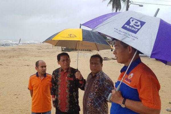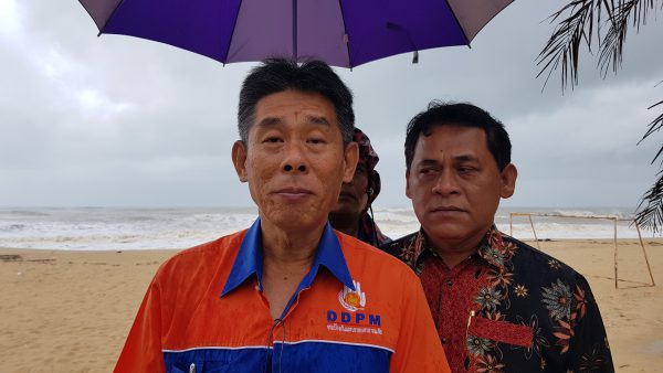 นายเถลิงศักดิ์ ภูวญาณพงษ์ หัวหน้าป้องกันและบรรเทาสาธารณภัยจังหวัดนราธิวาส พร้อมด้วยนายรุสลัน อารง นายกองค์การบริหารส่วนตำบลโคกเคียน ลงพื้นที่ตรวจสภาพบรรยากาศบริเวณริมชายหาดบ้านทอนนาอีม อ.เมือง จ.นราธิวาส ซึ่งพบว่าบริเวณชายฝั่งมีคลื่นลมแรง มีการกั้นแนวหินกันคลื่นซัดเข้าชายฝั่ง ขณะที่ชาวบ้านที่อาศัยอยู่ใกล้ชายฝั่งได้เฝ้าดูสถานการณ์ฝนที่ตกลงมาอย่างต่อเนื่อง หากมีเหตุฉุกเฉิน จะได้เตรียมพร้อมเข้าพักพิงยังศูนย์อพยพชั่วคราวโรงเรียนบ้านทอน ตำบลโคกเคียน อำเภอเมือง จังหวัดนราธิวาส ในทันที