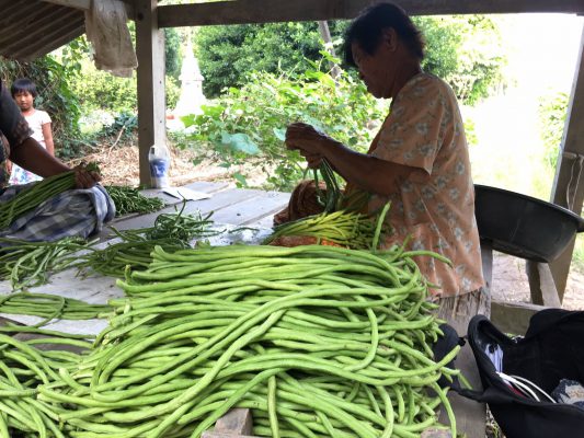 ซึ่งขณะนี้อยู่ในช่วงการเก็บเกี่ยวผลผลิต โดยถั่วฝักยาว เก็บผลผลิตได้วันละประมาณ 50 กิโลกรัม ราคาตามขนาดของฝัก ดังนี้ ฝักยาว กิโลกรัมละ 26 บาท ฝักขนาดกลาง กิโลกรัมละ 10-14 บาท และฝักสั้น กิโลกรัมละ 5 บาท บวบ เก็บผลผลิตเฉลี่ย วันละ 6-8 กิโลกรัม ราคากิโลกรัมละ 10 บาท