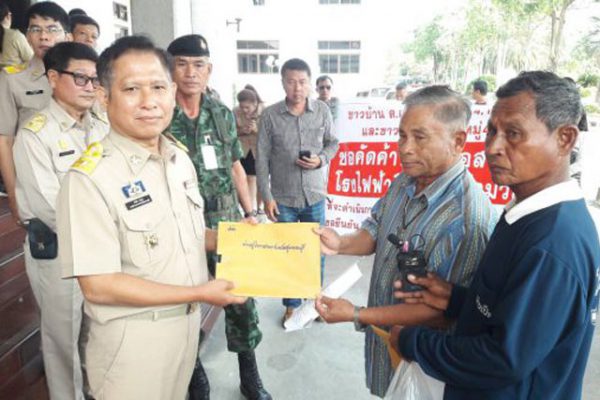 เรื่องการคัดค้านการสร้างโรงไฟฟ้าจากก๊าซชีวภาพของบริษัท อรัญ เพาเวอร์ จำกัด ในพื้นที่นั้น พร้อมด้วยชาวบ้านประมาณ ๕๐ คน