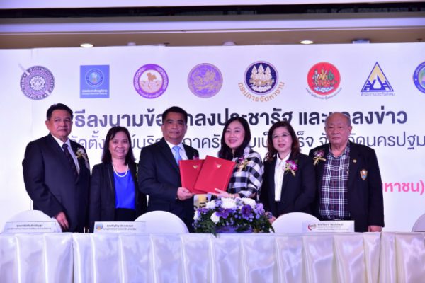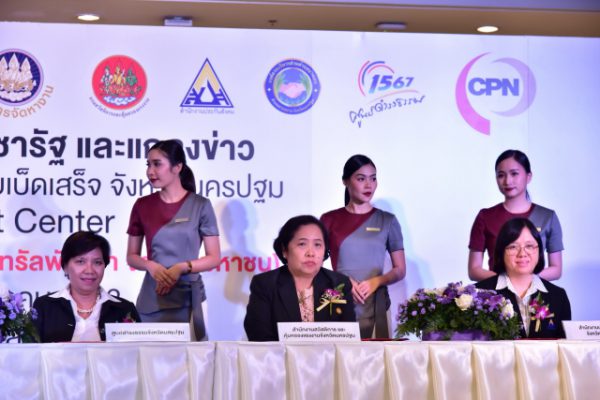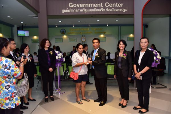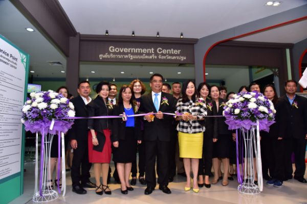 วันที่ 8 มกราคม 2562 ที่ลานโปรโมชั่น ชั้น 1 ศูนย์การค้าเซนทรัลพลาซา ศาลายา อำเภอสามพราน จังหวัดนครปฐม นายภิญโญ ประกอบผล รองผู้ว่าราชการจังหวัดนครปฐม พร้อมด้วย นางอารีย์พันธ์ เจริญสุข รองเลขาธิการ ก.พ.ร. ,นางสาววัลยา จิราธิวัฒน์ รองประธานเจ้าหน้าที่บริหาร บริษัท เซ็นทรัลพัฒนา จำกัด (มหาชน), ประธานหอการค้าจังหวัดนครปฐม , หัวหน้าสำนักงานจังหวัดนครปฐม ,ประธานสภาอุตสาหกรรม และรองกรรมการผู้จัดการใหญ่ ฝ่ายบริหารทรัพย์สิน บริษัท เซ็นทรัลพัฒนา จำกัด (มหาชน), และหน่วยงานที่ให้บริการทั้ง 10 หน่วยงาน ร่วมลงนามบันทึกข้อตกลงประชารัฐว่าด้วยความร่วมมือในการจัดตั้งศูนย์บริการภาครัฐแบบเบ็ดเสร็จ (Government Center) ในศูนย์การค้าเซ็นทรัลพลาซาศาลายา ระหว่างจังหวัดนครปฐม กับบริษัท เซ็นทรัลพัฒนา จำกัด (มหาชน) พร้อมเปิดศูนย์บริการภาครัฐแบบเบ็ดเสร็จ (Government Center) อย่างเป็นทางการ