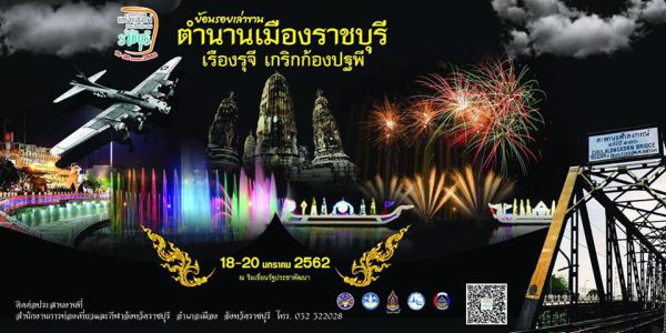 งานนี้จัดขึ้นเป็นครั้งแรก โดยเช้าวันที่ 15 เป็นการบวงสรวงและทำบุญให้หลวงนิคมคณารักษ์ ข้าหลวงประจำจังหวัดราชบุรี ที่เสียชีวิตระหว่างการออกตรวจความเรียบร้อยช่วงสงครามที่บริเวณสะพานดำ (เมื่อวันที่ 15 มกราคม 2488) ช่วงเย็นตั้งแต่เวลา 18.00 น. เป็นต้นไป ชมการแสดงแสงสีน้ำพุดนตรี วันที่ 16 บ่าย จำหน่ายสินค้าของที่ระลึก อาหารเด่นของจังหวัดราชบุรี ส่วนในวันที่ 18 – 20 มกราคม 2562 ตั้งแต่เวลา 16.00 น. เป็นการแสดงศิลปวัฒนธรรมร่วมสมัย การแสดงพื้นบ้าน กิจกรรม workshop การประกวดวาดภาพชิงเงินรางวัล ดนตรี และไฮไลท์ เวลา 19.30 น. ชมการแสดง Light & Sound จินตภาพประกอบแสงสีเสียงและสื่อผสมอิงประวัติศาสตร์ “ย้อนรอยเล่าขานตำนานเมืองราชบุรี เรืองรุจีเกริกก้องปฐพี” ที่เวทีกลางน้ำ ตื่นตาตื่นใจด้วยเทคนิคจำลองเหตุการณ์สำคัญในการระเบิดสะพาน การแสดงพลุประกอบเสียงเพลงพร้อมเอฟเฟคที่หาชมยาก สอบถามรายละเอียดได้ที่ ททท. สำนักงานราชบุรี 0329 1917 6-7 call center 1672