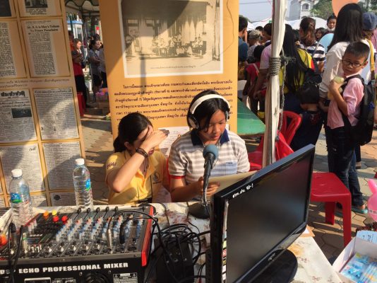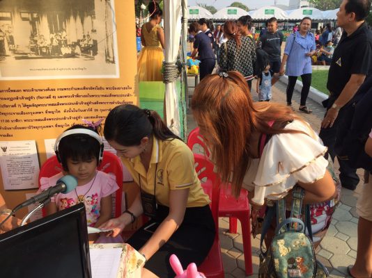 ที่บริเวณบูธของ สถานีวิทยุกระจายเสียงแห่งประเทศไทย จังหวัดสุพรรณบุรี ภายในงานวันเด็กแห่งชาติ ปี 2562 ที่ สวนเฉลิมภัทรราชินี มีเด็กและเยาวชนจำนวนมากสนใจเข้าร่วมกิจกรรมเล่นเกมตอบคำถาม และร่วมฝึกอ่านข่าว หรือ“นักข่าว…….น้อย” เป็นจำนวนมาก