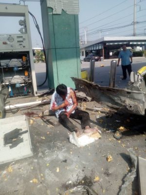 จากการสอบถาม นายมาต โพธา อายุ 67 ปี คนขับรถยนต์แท็กซี่ คันสีเขียวเหลือง ที่เข้ามารอเติมก๊าซ ได้เล่าว่า ก่อนเกิดเหตุตนได้ขับรถเข้ามาเพื่อที่จะเติมก๊าซ ขณะขับผ่านตู้ที่เกิดเหตุ ได้พบเห็นชายซึ่งเป็นคนขับแท็กซี่คันที่เกิดเหตุเปิดประตูเดินลงมาจากรถคาดว่าน่าจะลงมาชำระค่าก๊าซที่เติมเสร็จแล้วโดยมีหญิงสาวพนักงานของปั้มก๊าซดังกล่าวยืนอยู่หน้าตู้จ่ายก๊าซ อยู่ถังบรรจุก๊าซที่ติดตั้งอยู่ท้ายรถแท็กซี่คันดังกล่าวได้เกิดระเบิดขึ้นเสียงดังสนั่นจนหูอื้อและกระจกประตูข้างซ้ายของรถตนแตกกระจายทั้ง 2 บาน สิ้นเสียงระเบิดได้พบว่ารถแท็กซี่คันดังกล่าวตัวถัวฉีกจนแหลกทั้งคัน ส่วนผู้บาดเจ็บซึ่งเป็นคนขับทราบชื่อภายหลังนายวิชัย บัวดอก อายุ 45 ปี ถูกระเบิดที่บริเวณด้านหลังได้รับบาดเจ็บสาหัส ส่วนพนักงานของปั้มดังกล่าวที่อยู่ใกล้ตู้จ่ายก๊าซจำนวน 2 คนถูกแรงระเบิดได้รับบาดเจ็บเช่นกันทราบชื่อ นางสาวกานดา นารอด อายุ 35 ปี และนางสาววิมลวรรณ เพ็งบุตร อายุ 27 ปี ได้รับบาดเจ็บที่ใบหน้าและศีรษะ รวมทั้งขา บาดเจ็บสาหัส ตนรีบเปิดประตูรถวิ่งหนีตายออกจากตัวรถไปตั้งหลักก่อนรีบโทรแจ้งขอความช่วยเหลือจากเจ้าหน้าที่ตำรวจ