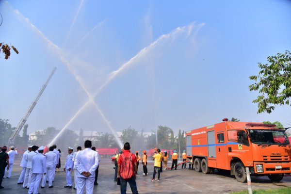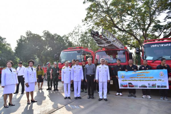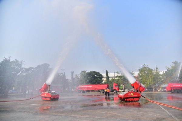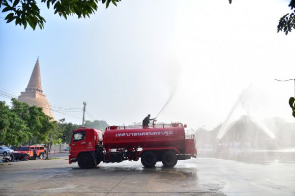 วันที่ 17 มกราคม 2562 สถานการณ์ฝุ่นละอองขนาดเล็ก PM 2.5 ในจังหวัดนครปฐม ยังคงมีค่าเกินมาตรฐาน คือ 50 ไมโครกรัม/ลูกบาศก์เมตร ต่อเนื่องเป็นวันที่ 5 โดยในวันนี้ (17 ม.ค. 62) กรมควบคุมมลพิษ ได้รายงานค่าฝุ่นละอองจากการตรวจวัดในพื้นที่ตำบลนครปฐม อำเภอเมือง เมื่อช่วงเช้าที่ผ่านมา วัดค่าฝุ่นละอองได้ 75 ไมโครกรัม/ลูกบาศก์เมตร ทางสำนักงานป้องกันและบรรเทาสาธารณภัยจังหวัดนครปฐม และเทศบาลนครนครปฐม ได้ร่วมปฏิบัติการป้องกันและลดผลกระทบจากปัญหาดังกล่าว โดยการฉีดน้ำลดฝุ่นละอองในอากาศ ด้วยชุดอุปกรณ์ดับเพลิงควบคุมระยะไกล LUF 60 พร้อมรถบรรทุกน้ำช่วยดับเพลิงขนาด 10,000 ลิตร บริเวณองค์พระปฐมเจดีย์ และภายในพระราชวังสนามจันทร์ เนื่องจากมีประชาชนนิยมมาออกกำลังกายในช่วงเช้าและช่วงเย็น ซึ่งได้รับการสนับสนุนอุปกรณ์จากศูนย์ป้องกันและบรรเทาสาธารณภัย เขต 2 สุพรรณบุรี