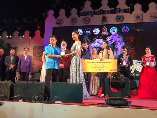 ที่เวทีการแสดงศิลปวัฒนธรรมในงานอนุสรณ์ดอนเจดีย์ ประจำปี 2562 พระบรมราชานุสรณ์ดอนเจดีย์ นายนิมิต วันไชยธนวงศ์ ผู้ว่าราชการจังหวัดสุพรรณบุรี เป็นประธานในการมอบรางวัลประกวดร้องเพลงลูกทุ่งประชาชนรอบชิงชนะเลิศ