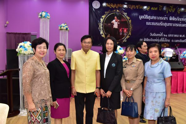 วันที่ 21 มกราคม พ.ศ. 2562 ณ พิพิธภัณฑ์หุ่นขี้ผึ้งไทย ต. ขุนแก้ว อ. นครชัยศรี จ. นครปฐม นางสาวสรียา บุญมาก ผู้อำนวยการการท่องเที่ยวแห่งประเทศไทย สำนักงานราชบุรี ร่วมเป็นเกียรติในพิธีเปิดงาน “ชาตกาล 109 ปี ครูเอื้อ สุนทรสนาน” โดยร้อยตรีพงศธร ศิริสาคร รองผู้ว่าราชการจังหวัดนครปฐม เป็นประธานเปิดงานและตัดริบบิ้นเปิดรูปหุ่นครูเอื้อ สุนทรสนาน พร้อมกับนางอติพร สุนทรสนาน เสนะวงศ์ กรรมการและเลขานุการมูลนิธิสุนทราภรณ์ นายสุธี ศรีเบญจโชติ ประธานกรรมการพิพิธภัณฑ์หุ่นขี้ผึ้งไทย นายสุรัตน์ ศรีเบญจโชติ นายกสมาคมท่องเที่ยวจังหวัดนครปฐม นายอำเภอดอนตูม ประชาสัมพันธ์จังหวัดนครปฐม และแขกผู้มีเกียรติเข้าร่วมงานคับคั่ง