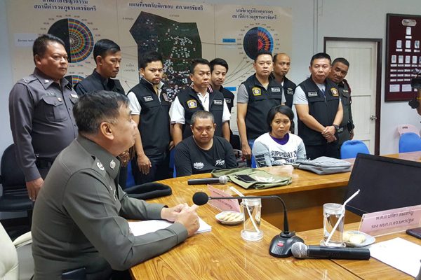กระทั่งเมื่อเวลา16.30 น.วันที่ 6 มกราคม 2561 กำลังเจ้าหน้าที่ตำรวจภายใต้การอำนวยการของ พันตำรวจเอก สีหเดช ประกอบแก้ว ผู้กำกับการสถานีตำรวจภูธรนครชัยศรี นำการปฏิบัติโดย พันตำรวจโท นิคม ชัยเจริญ รองผู้กำกับสืบสวน สถานีตำรวจภูธรนครชัยศรี พันตำรวจโท ครรชิต โขวัฒนชัย สารวัตรสืบสวน สถานีตำรวจภูธรนครชัยศรี ร้อยตำรวจเอก ภัทร บุญอารักษ์ รองสารวัตรสืบสวนสถานีตำรวจภูธร นครชัยศรี ร้อยตำรวจเอก โฆษิต เจริญสุข รองสารวัตรสืบสวน สถานีตำรวจภูธรนครชัยศรี ร้อยตำรวจโท พุฒิวัชร์ ทิมแสงจันทร์ รองสารวัตรสืบสวน สถานีตำรวจภูธรนครชัยศรีพร้อมพวก ได้ร่วมกันจับกุม นายสุชาติ อยู่เสือ อายุ 34 ปี อยู่บ้านเลขที่ 170/54 หมู่ 2 ตำบลคลองใหม่อำเภอสามพราน จังหวัดนครปฐม และ นางสาว อัมรินทร์ สังข์ทอง อายุ 36 ปี อยู่บ้านเลขที่ 51/19 หมู่ 2 ตำบลอ้อมใหญ่ อำเภอสามพราน จังหวัดนครปฐมตามหมายจับ ศาลจังหวัดนครปฐม ข้อกล่าวหา”ร่วมกันลักทรัพย์โดยทำลายสิ่งกีดกั้นสำหรับคุ้มครองทรัพย์โดยใช้ยานพาหนะเพื่อสะดวกแก่การกระทำความผิดหรือการพาทรัพย์นั้นไป” พร้อมทั้งยึดรถจักรยานยนต์ฮอนด้าเวฟสีน้ำเงิน ติดป้ายทะเบียน ยบษ. 254 กทม.ซึ่งเป็นป้ายทะเบียนของรถคันที่ใช้ก่อเหตุ ขณะจอดอยู่ริมถนนในหมู่บ้าน ตำบลขุนแก้ว อำเภอนครชัยศรี จังหวัดนครปฐม โดย พบว่ารถจักรยานยนต์คันดังกล่าวมีการสลับแผ่นป้ายทะเบียนเพื่อตบตาเจ้าหน้าที่ ตำรวจ