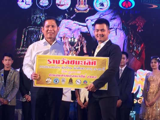 ที่เวทีการแสดงศิลปวัฒนธรรมในงานอนุสรณ์ดอนเจดีย์ ประจำปี 2562 พระบรมราชานุสรณ์ดอนเจดีย์ นายธีรชัย ทศรฐ รองผู้ว่าราชการจังหวัดสุพรรณบุรี เป็นประธานในการมอบรางวัลประกวดร้องเพลงลูกทุ่งสายเลือดสุพรรณ นักเรียน-นักศึกษา อายุระหว่าง15-20ปี รอบชิงชนะเลิศ งานอนุสรณ์ดอนเจดีย์ ประจำปี 2562 ซึ่งจัดโดยมูลนิธิพระบรมราชานุสรณ์ดอนเจดีย์ ซึ่งผลการตัดสิน รางวัลชนะเลิศหญิง /ชาย ได้แก่ นางสาวพรพนา ศรีสะอาด และนายพงษ์กรณ์ ภาษิต รับถ้วยรางวัลเกียรติยศ พร้อมเงินสด 10,000.-บาท / รางวัลรองชนะเลิศอันดับ๑ ได้แก่นางสาวสุนิศรา สมใจเดช และนายเอกชัย ชูศรีจันทร์ รับถ้วยรางวัลเกียรติยศ พร้อมเงินสด 7,500.- พันบาท และรางวัลรองชนะเลิศอันดับ ๒ ได้แก่ นางสาวณัฐธิดา นารี และนายนิธิเสถียร พงษ์เทพ รับเกียรติบัตร พร้อมเงินสด 5,000.- พันบาท และรางวัลชมเชย 2 รางวัน ได้แก่ นางสาวจุฑามาศ เสาวรส /นางสาวอวัศยา ฉัตรเงิน /นายอโณชา ปานประชาติ และนายภูวดล พลายระหาร รับเกียรติบัตร พร้อมเงินสด 2,500.- พันบาท โดยมีนักร้องรับเชิญ และศิลปิน จอมขวัญ กัลยา และเจมส์ ชินกฤษ