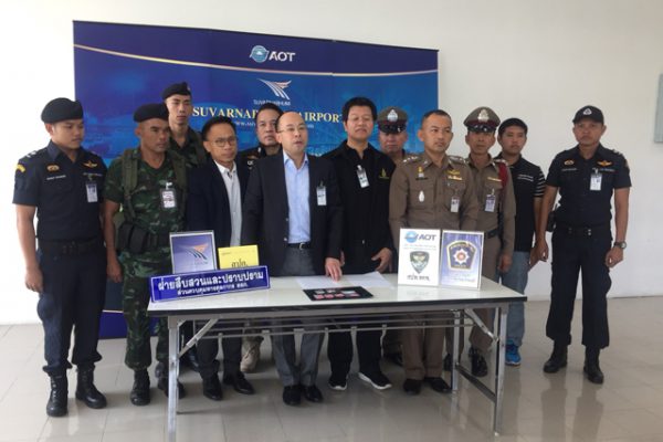 นายกิตติพงศ์ กิตติขจร รองผู้อำนวยการท่าอากาศยานสุวรรณภูมิ กล่าวว่า เมื่อวันที่ 24 ม.ค.2562 เวลา 19.15 น. ท่าอากาศยานสุวรรณภูมิ สภ.ท่าอากาศยานสุวรรณภูมิ กองร้อยรักษาความสงบเรียบร้อยกองพันทหารราบที่ 1 กรมทหารราบที่ 112 สำนักงานศุลกากรตรวจสินค้าท่าอากาศยานสุวรรณภูมิ ได้บูรณาการตรวจค้นพื้นที่ เขตปลอดอากร ท่าอากาศยานสุวรรณภูมิ และน.ส.สุธิดา พรบุญ เจ้าหน้าที่ รปภ.ประจำจุด AC ภายในเขตปลอดอากร ท่าอากาศยานสุวรรณภูมิ ได้ทำการเรียกตรวจค้นร่างกาย นายอดิศักดิ์ จันทร์เหลือง พนักงานบริษัทแห่งหนึ่ง เนื่องจากมีพิรุจ พบยาเสพติดประเภทที่ 1 (ยาบ้า) จำนวน 3 ถุง 150 เม็ด และยาไอซ์ จำนวน 2 ถุง น้ำหนัก 2.26 กรัม ที่ซุกซ่อนไว้ในกระเป๋าเสื้อ แจ๊กเก๊ตสีดำ ด้านใน จากการสอบสวนให้การรับสารภาพว่า ยาเสพติดดังกล่าวเป็นของตนจริง จึงได้ทำการขยายผล และทำการล่อซื้อยาเสพติดให้โทษประเภทที่ 1 (ยาบ้า) จากนาย นายธัญวีน์ มานา จำนวน 50 เม็ด และสามารถจับกุมตัวได้พร้อมของกลางยาบ้า จำนวน 50 เม็ด ได้ที่ลานจอดรถ จยย.เขตปลอดอากร ได้ที่ลานจอดรถ จยย.เขตปลอดอากร