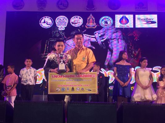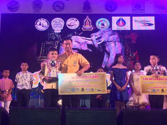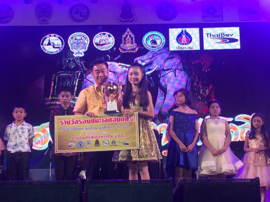 และด.ช. ศักรินทร์ วงษาจันทร์ รับถ้วยรางวัลเกียรติยศ พร้อมเงินสด 10,000.-บาท / รางวัลรองชนะเลิศอันดับ๑ หญิง /ชาย ได้แก่ ด.ญ.พลอยปภัส อัครวุฒิธัญภัทร์ และด.ช.ณัทธร จันทร์เสวก รับถ้วยรางวัลเกียรติยศ พร้อมเงินสด 7,500.- พันบาท และรางวัลรองชนะเลิศอันดับ ๒ หญิง /ชาย ได้แก่ ด.ญ.พัชมณฑ์ รุ่งเรือง และ ด.ช.เตชัส ภาษิต รับเกียรติบัตร พร้อมเงินสด 5,000.- พันบาทและรางวัลชมเชย หญิง /ชาย ได้แก่ ด.ญ.ปรียาภา อินทร์นอก /.ด.ญ.อนัญญา อ่อนวิมล/ ด.ช.ชาคริต นานอก และธนวัฒน์ จันทร์สำอางค์ รวม 4 รางวัน รับเกียรติบัตร พร้อมเงินสด 2,500.- พันบาท โดยมีนักร้องรับเชิญ และศิลปิน จอมขวัญ กัลยา และเจมส์ ชินกฤษ