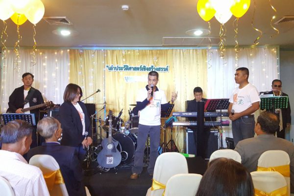 ขณะที่ไก่ไอดิน พันตำรวจเอก ดร.ไพรัตน์ไพพรรณรัตน์ กล่าวแสดงความรู้สึกสั้นๆว่า การศึกษาสำคัญที่สุดสำหรับเยาวชน เด็กต้องได้รับการศึกษา ในนามศิลปินของชมรมฯ และในนามของชมรมฯ การที่ช่วยเหลือช่วยเท่าที่กำลังมี และช่วยเหลือโดยไม่มีข้อแม้ ขอบคุณประชาชนที่สละทรัพย์ซื้อบัตรมาชมกิจกรรมดนตรีของชมรม แท้จริงแล้วเท่ากับท่านที่สละทรัพย์ซื้อบัตรเข้าชมกิจกรรมดนตรีท่านคือผู้ที่มีพระคุณเป็นผู้ที่อุปถัมภ์เด็กนักเรียนตัวจริง…