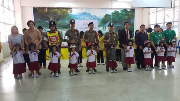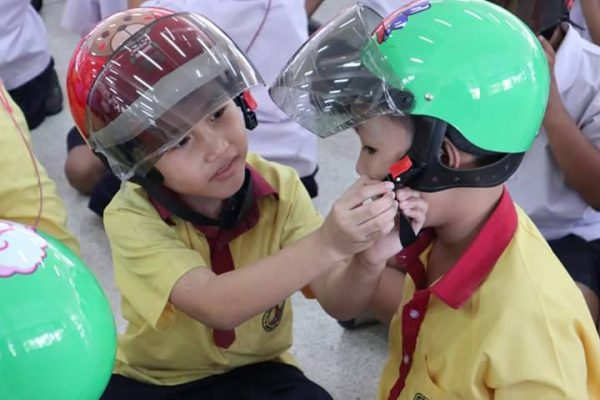 เมื่อเวลาประมาณ 13.16 น. วันที่ 29 มกราคม 2562 ที่ผ่านมา ที่โรงเรียนเทศบาล 3 สระกระเทียม อำเภอเมือง จังหวัดนครปฐม พันตำรวจโทวีระ นุชศิลป์ สวป. สภ.ลูกแก พร้อมคณะข้าราชการตำรวจในบังคับบัญชา ร่วมกัน นำ หมวกนิรภัย(หมวกกันน็อค) ซึ่งจัดซื้อมาจากทุนด้วยการทำ โครงการจิตอาสา เล่นกีตาร์แสดงดนตรี เปิดหมวก เพื่อ รวบรวม ทุนทรัพย์ของผู้ที่มีจิตสาธารณะร่วมสนับสนุน จัดซื้อ หมวกกันน็อค สำหรับเด็กเล็ก ระดับอนุบาล แจกให้กับ น้องๆหนูๆเด็กนักเรียนระดับชั้นอนุบาลโรงเรียน เทศบาล 3 สระกระเทียม อำเภอเมือง จังหวัดนครปฐม จำนวน 200 ใบ โดยมี นายธงชัย นนทสี ผู้อำนวยการ โรงเรียน เทศบาล 3 สระกระเทียม พร้อมคณะครูของโรงเรียน นำนักเรียน มาร่วมรับหมวกนิรภัย สวมหมวกกันน๊อกให้น้อง ลดเจ็บ-ตาย “วีระห่วงหัวน้อง สวมก่อนซ้อนขับ เพื่อคุ้มครอง ให้ปลอดภัย”