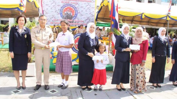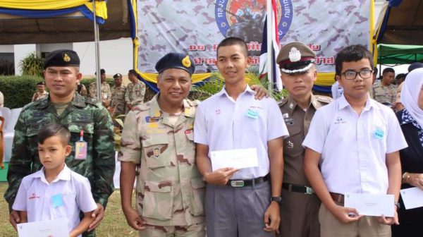 โอกาสนี้ นายกองเอกเอกรัฐ หลีเส็น ผู้ว่าราชการจังหวัดนราธิวาส ผู้บังคับการกองอาสารักษาดินแดนจังหวัดนราธิวาส พร้อมผู้บังคับบัญชา ทหาร ตำรวจ ได้เดินตรวจพลสวนสนาม พร้อมทั้งกล่าวให้โอวาทแก่สมาชิกอาสารักษาดินแดนจังหวัดนราธิวาส และมอบเข็มอาสารักษาดินแดนสดุดีให้กับผู้บังคับบัญชา และสมาชิกกองอาสารักษาดินแดนที่ปฏิบัติหน้าที่ด้วยความเสียสละ จนบังเกิดผลดีต่อประเทศชาติอันควรได้รับการยกย่องสรรเสริญ จำนวน 114 ราย และมอบทุนให้แก่บุตรสมาชิกอาสารักษาดินแดนที่กำลังศึกษาเล่าเรียน จำนวน 26 ทุน มอบทุนการศึกษาของชมรมแม่บ้านมหาดไทยจำนวน 33 ทุน มอบทุนการศึกษากองทุนร้านสวัสดิการอส จำนวน 130 ทุน เพื่อเป็นขวัญกำลังใจและเป็นการแบ่งเบาภาระค่าใช้จ่ายแก่ครอบครัวสมาชิกกองอาสารักษาดินแดน