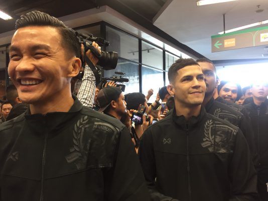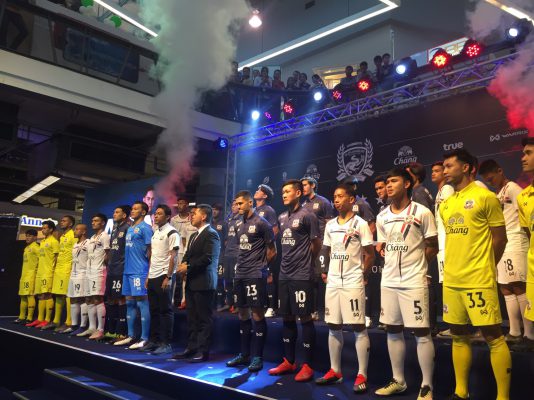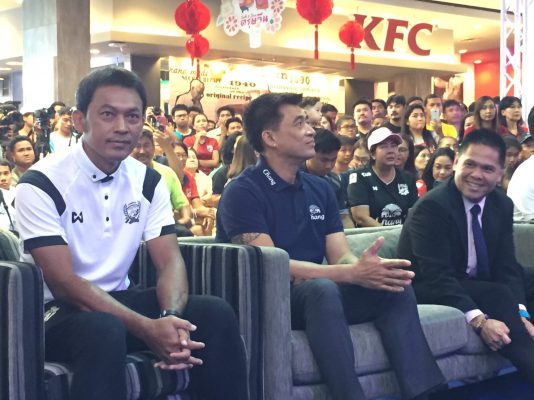 ที่ลานด้านหน้าซูปเปอร์สปอร์ต ห้างสรรพสินค้า โรบินสันสุพรรณบุรี นายวราวุธ ศิลปอาชา ประธานสโมสรสุพรรณบุรี เอฟซี พร้อมด้วยนายสุรพล อุทินทุ ผู้อำนวยการสำนักประสานงานภายนอก บ.ไทยเบฟเวอเรจ จำกัด นายวิศัลย์ วณะศักดิ์ศรีสกุล กรรมการผู้จัดการบริษัท วอริกซ์ สปอร์ต จำกัด พญ.ยิ่งลักษณ์ ปัญจวรานุวัตร์ ผู้ช่วย ผู้อำนวยการโรงพยาบาล บีเอ็นเอช ร่วมกันเปิดตัวเหล่าขุนพลนักเตะ ช้างศึกยุทธหัตถี สุพรรณบุรี เอฟซี