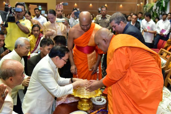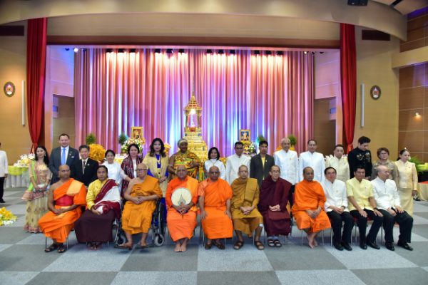 วันที่ 11 กุมภาพันธ์ 2562 ที่มหาวิทยาลัยราชภัฏนครปฐม นายวีระ โรจน์พจนรัตน์ รัฐมนตรีว่าการกระทรวงวัฒนธรรม เป็นประธานพิธีอัญเชิญพระบรมสารีริกธาตุจากประเทศศรีลังกา ประดิษฐานภายในห้องประชุมปิ่นเกลียว ชั้น 2 อาคารศูนย์ภาษา ศูนย์คอมพิวเตอร์ พิธีกางธงฉัพพรรณรังสีที่ใหญ่ที่สุดในโลก และกิจกรรมปฏิบัติพุทธบูชาพระบรมสารีริกธาตุ เพื่อถวายพระราชกุศลแด่ พระบาทสมเด็จพระปรมินทรมหาภูมิพลอดุลยเดช บรมนาถบพิตร และเฉลิมพระเกียรติ สมเด็จพระเจ้าอยู่หัว โดยมีผู้บริหารจากกระทรวงวัฒนธรรม รองผู้ว่าราชการจังหวัดนครปฐม หัวหน้าส่วนราชการ ผู้บริหาร นักศึกษา มหาวิทยาลัยราชภัฏนครปฐม ร่วมพิธีในครั้งนี้ ซึ่งคณะสงฆ์ นำโดยพระวรกโกธะ ศรีญาณรัตนมหานายกะ พระสังฆราช นิกายสยามวงศ์ ประเทศศรีลังกา พร้อมด้วย ผู้ทรงคุณวุฒินานาชาติ และแขกผู้มีเกียรติ ได้ร่วมกันอัญเชิญพระบรมสารีริกธาตุจากประเทศศรีลังกา โดยเริ่มเคลื่อนขบวนรถแห่ จากบริเวณองค์พระปฐมเจดีย์ จนถึง มหาวิทยาลัยราชภัฏนครปฐม เพื่อเป็นการส่งเสริมการและแสดงออกทางวัฒนธรรมที่เป็นเอกลักษณ์สำคัญสูงสุดของชาติ คือ ความศรัทธาในพระพุทธศาสนา และความเคารพเทิดทูนสถาบันพระมหากษัตริย์ อีกทั้งให้เครือข่ายศิลปวัฒนธรรมและชาวต่างชาติได้เรียนรู้ เข้าใจ มีความภาคภูมิใจในการมาเยือนประเทศไทย ตลอดจนแลกเปลี่ยนประสบการณ์ที่ดีทางศิลปวัฒนธรรมในระดับนานาชาติอีกด้วย