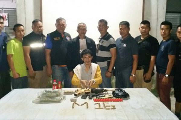 เมื่อเวลา 22.30 น.ของคืนวันที่ 19 ก.พ. 62 พ.ต.อ.ลุกมาน บาเกาะ ผกก.สภ.เจาะไอร้อง จ.นราธิวาส พร้อมด้วยกำลังเจ้าหน้าที่ตำรวจชุดสืบสวน สภ.เจาะไอร้อง และเจ้าหน้าที่ทหารชุดเฉพาะกิจกรมทหารพรานที่ 48 ได้ร่วมสนธิกำลังเข้าตรวจค้นบ้านเลขที่ 136 ม.7 ต.บูกิต อ.เจาะไอร้อง หลังได้รับแจ้งจากแหล่งข่าวเป็นสถานที่ซ่องสุมและจำหน่ายยาเสพติดรายใหญ่ในพื้นที่ เมื่อถึงเป้าหมายเจ้าหน้าที่ได้แสดงตัวเพื่อขอตรวจค้น พบว่าบ้านหลังดังกล่าวเป็นบ้านพักของนายอิลฮัม แวกาเดร์ อายุ 29 ปี จากการตรวจค้นในบ้านพักพบของกลางซุกซ่อนอยู่จำนวน 9 รายการ ประกอบด้วย1.ใบพืชกระท่อมสด จำนวน 3 มัด น้ำหนัก600 กรัม 2.น้ำต้มใบพืชกระท่อม จำนวน 2 ขวด ปริมาตรสุทธิ 780 มล.3.อาวุธปืนยาว M16 ที่ใช้สีสเปร์พ่นทับ จำนวน 1 กระบอก 4.อาวุธปืนพก ขนาด .38 จำนวน 1 กระบอก5.กระสุนปืน เอ็ม.16 จำนวน 47 นัด 6.กระสุนปืนขนาด .38 จำนวน 15 นัด 7.กระสุนปืนลูกซองขนาดเบอร์ 12จำนวน 17 นัด 8.ซองบรรจุกระสุนเอ็ม.16 จำนวน 1 ซอง และ 9.ซองพกอาวุธปืนพก ขนาด .38 แบหนังสีขาว จำนวน 1 ซอง เจ้าหน้าที่จึงได้ควบคุมตัวนายอิลฮัม แวกาเดร์ พร้อมของกลาง ไปสอบสวนที่ สภ.เจาะไอร้อง