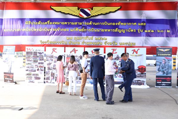 กองทัพอากาศ ประกอบพิธีประดับเครื่องหมายความสามารถในการบิน กองทัพอากาศ และมอบประกาศนียบัตรนักบินประจำกอง แก่ศิษย์การบิน นายทหารสัญญาบัตร รุ่นที่ ๑๔๑-๖๐-๒ ที่สำเร็จการฝึกอบรมตามหลักสูตรการฝึกศิษย์การบิน กองทัพอากาศ จำนวน ๓๔ คน โดยมี พลอากาศเอก ชัยพฤกษ์ ดิษยะศริน ผู้บัญชาการทหารอากาศ เป็นประธาน และ พลอากาศตรี สุวรรณ ขำทอง ผู้บัญชาการโรงเรียนการบิน เป็นผู้กล่าวรายงาน ในวันพุธที่ ๒๗ กุมภาพันธ์ ๒๕๖๒ เวลา ๑๐.๐๐ ณ ลานจอดอากาศยาน สนามบินกำแพงแสน โรงเรียนการบิน