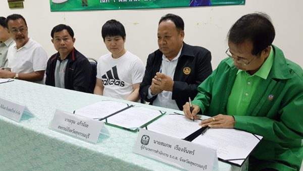 จากนั้นได้ร่วมกันเป็นพยานบันทึกข้อตกลงความร่วมมือโครงการช่วยเหลือเกษตรกรเพื่อเพิ่มช่องทางการตลาดข้าวเปลือก ระหว่าง สหกรณ์การเกษตรเพื่อการตลาดลูกค้า ธ.ก.ส. สุพรรณบุรี จำกัด กับผู้ประกอบการโรงสีข้าว ประกอบด้วย บริษัท โรงสีเกาะแก้วเจริญธัญญา จำกัด หมู่ 6 ต.เดิมบางนางบวช อ.เดิมบางนางบวช จ.สุพรรณบุรี ห้างหุ้นส่วนจำกัด โพธิ์ธิบูรพ์ หมู่ 6 ต.บ้านโพธิ์ อ.เมืองสุพรรณบุรี จ.สุพรรณบุรี ห้างหุ้นส่วนจำกัด ต.ทวีรุ่งเรือง (1992) หมู่ 2 ต.บางปลาม้า อ.บางปลาม้า จ.สุพรรณบุรี และบริษัท ที เอ็น เอ อินเตอร์ไรซ์ จำกัด หมู่ 6 ต.บางงาม อ.ศรีประจันต์ จ.สุพรรณบุรี โดยธนาคารเพื่อการเกษตรและสหกรณ์การเกษตร (ธ.ก.ส.) สาขาตลาดกลางสินค้าเกษตรสุพรรณบุรี ได้ร่วมมือกันระหว่าง สหกรณ์การเกษตรเพื่อการตลาดลูกค้า ธ.ก.ส.สุพรรณบุรี จำกัด วัตถุประสงค์ เพื่อส่งเสริมสนับสนุนช่องทางการลาดข้าวเปลือกให้แก่เกษตรกรในจังหวัดสุพรรณบุรี และจังหวัดใกล้เคียง สกต. ได้ดำเนินธุรกิจด้วยหลักการ “เกื้อกูล แบ่งปัน เป็นธรรม” แก่สมาชิก ผู้ประกอบการโรงสีข้าว สามารถมรจุดรับซื้อข้าวเปลือกเพิ่มมากขึ้น ลดเวลา และค่าใช้จ่ายในการจัดซื้อข้าวเปลือก