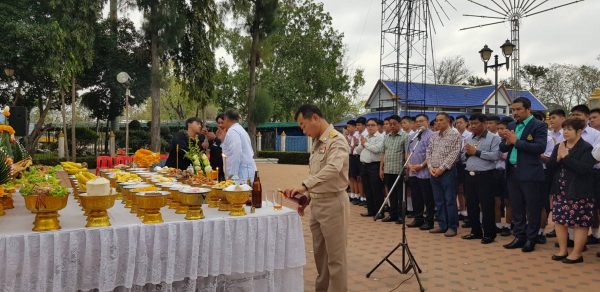 ผู้ว่าราชการจังหวัดสุพรรณบุรี ส่วนราชการจัดพิธีบวงสรวง ขอพระบรมราชานุญาต การจัดแสดงยุทธหัตถี ในงานอนุสรณ์ดอนเจดีย์ จังหวัดสุพรรณบุรี ประจำปี 2561