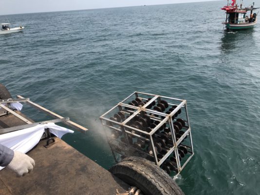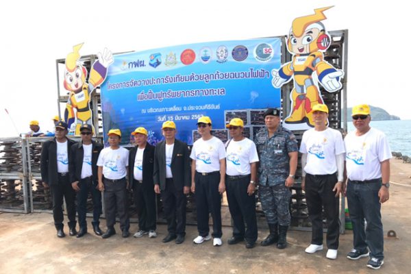 นายสวง สุดประเสริฐ ผู้อำนวยการทรัพยากรธรรมชาติและสิ่งแวดล้อมประจวบคีรีขันธ์ กล่าวว่า โครงการฟื้นฟูทรัพยากรทางทะเล โดยการจัดวางปะการังเทียมด้วยลูกถ้วยฉนวนไฟฟ้า ของ กฟผ.นั้น ทาง กฟผ.ได้มีภารกิจในการจัดหา ผลิตและส่งจ่ายกระแสไฟฟ้าเพื่อความสุขของคนไทยโดยผ่านทางสายส่งไฟฟ้าแรงสูงซึ่งจะมีลูกถ้วยฉนวนไฟฟ้า และเป็นองค์ประกอบที่สำคัญในการส่งจ่ายกระแสไฟฟ้าสู่ประชาชนและเมื่อลูกถ้วยดังกล่าวหมดอายุการใช้งานแล้ว กฟผ.ได้พิจารณาเห็นว่าน่าจะนำมาใช้เกิดประโยชน์สูงสุดแก่ส่วนรวมและชุมชน จึงเห็นสมควรและมีความเหมาะสมกับโครงการฟื้นฟูทรัพยากรทางทะเล โดยการจัดวางปะการังเทียมด้วยลูกถ้วยฉนวนไฟฟ้า เพื่อฟื้นฟูทรัพยากรทางทะเล จึงร่วมประชุมประสานงานร่วมกับคณะกรรมการจังหวัด เพื่อชี้แจงถึงความเป็นมาของโครงการดังกล่าวพร้อมทั้งรับฟังความคิดเห็นจากประชาชน และส่วนราชการให้เกิดข้อสรุปที่ตรงกับความต้องการและเกิดประโยชน์อย่างแท้จริงกับชุมชน ในครั้งนี้