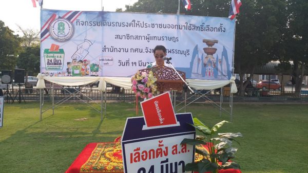 วันนี้ (19 มี.ค. 62) ณ โรงเรียนสุพรรณภูมิ อำเภอเมืองสุพรรณบุรี นายนพฤทธิ์ ศิริโกศล ปลัดจังหวัดสุพรรณบุรี กล่าวขณะ เป็นประธานเปิดโครงการรณรงค์ส่งเสริมให้ประชาชนออกมาใช้สิทธิเลือกตั้งสมาชิกสภาผู้แทนราษฎร ว่า การเลือกตั้งถือเป็นกิจกรรมที่สำคัญ ตามระบอบประชาธิปไตย อันมีพระมหากษัตริย์ทรงเป็นประมุข การได้มีโอกาสใช้สิทธิในการเลือกตั้งจึงถือเป็นความภาคภูมิใจของประชาชนชาวไทย