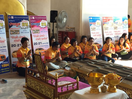 ที่วิหารหลวงพ่อโตวัดป่าเลไลยก์วรวิหาร อำเภอเมืองสุพรรณบุรี พระธรรมพุทธิมงคลและคณะสงฆ์เจริญพระพุทธมนต์และอธิฐานจิต
