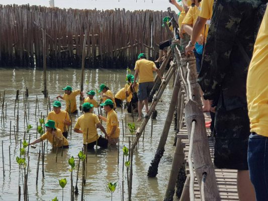 เมื่อวันที่31 มีนาคม2562 ชมรมรักษ์สปสช. ผู้บริหารเจ้าหน้าที่ครอบครัวสำนักงานหลักประกันสุขภาพแห่งชาติ(สปสช.)นำโดยนพ.ศักดิ์ชัยกาญจนวัฒนาเลขาธิการสปสช.และนายนิพัฒน์เกื้อสกุลรองผู้จัดการธกส. ทีมผู้บริหารเจ้าหน้าที่ครอบครัวสำนักงานหลักประกันสุขภาพแห่งชาติ(สปสช.) และธนาคารเพื่อการเกษตรและสหกรณ์การเกษตร(ธกส.) และชาวบ้านในพื้นที่ร่วมกันปลูกป่าชายเลนป่าโกงกางณชายทะเลหมู่10 ดอนหอยหลอดต.บางแก้วอ.เมืองจ.สมุทรสงครามกว่า160 คนจำนวน3,00 ต้นร่วมกันลงแรงช่วยกันบริจาคสมทบเงินเข้ามูลนิธิโรงเรียนธรรมชาติศึกษา63,200 บาทเพื่อร่วมอนุรักษ์ป่าธรรมชาติร่วมสร้างป่าชายเลน ตามรอยศาสตร์พระราชาณป่าชายเลนหมู่10 ต. บางแก้วอ.เมืองจ.สมุทรสงครามช่วยกันโดยสมทบเงินเข้ามูลนิธิโรงเรียนธรรมชาติศึกษาป่าชายเลน