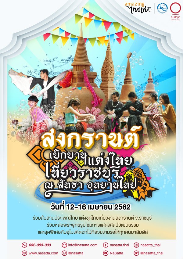 สงกรานต์ ปีนี้ ณ สัทธา อุทยานไทย อ.บางแพ จ.ราชบุรี ขอเชิญนักท่องเที่ยวร่วมอนุรักษ์สืบสานประเพณีปีใหม่ไทย ในกิจกรรมพิเศษ “สงกรานต์ เบิกบาน แต่งไทย เที่ยวราชบุรี” ในวันที่ 12 – 16 เมษายน พ.ศ. 2562 ตั้งแต่เวลา 08.30 – 17.00 น.