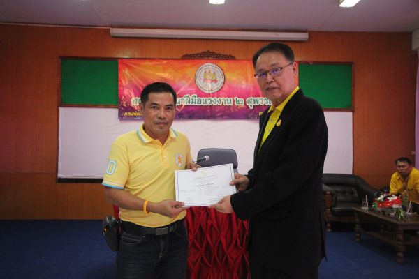 ที่ ห้องฝึกอบรมชั้นล่าง สถาบันพัฒนาฝีมือแรงงาน 2 สุพรรณบุรีนายสุรพล พลอยสุข รองอธิบดีกรมพัฒนาฝีมือแรงงาน เป็นประธานพิธีมอบวุฒิบัตร การฝึกอบรม ให้กับผู้ผ่านการฝึกอบรม จำนวน 2 สาขาอาชีพ คือ