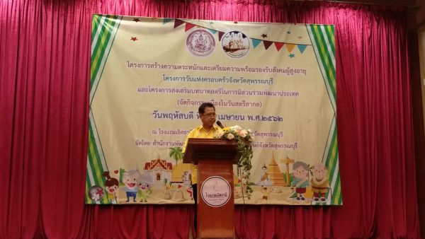 โดยพันเอกอภิรักษ์ นาคสิงห์ประธานสาขาสมาคมสภาผู้สูงอายุแห่งประเทศไทย ในพระบรมราชูปถัมภ์สมเด็จพระศรีนครินทราบรมราชชนนี ประจำจังหวัดสุพรรณบุรี กล่าวถึงการจัดงานในครั้งนี้ว่า สักพักงานพัฒนาสังคมและความมั่นคงของจังหวัดสุพรรณบุรี ร่วมกับสาขาสมาคมสภาผู้สูงอายุแห่งประเทศไทยฯ ประจำจังหวัดสุพรรณบุรี ได้ดำเนินโครงการโดยบูรณาการองค์การ 3 กลุ่มเข้าด้วยกัน เนื่องจากเป็นโครงการที่เกี่ยวข้องกับสถาบันครอบครัวที่เป็นสถาบันพื้นฐานที่สำคัญของสังคมในการเสริมสร้างพัฒนาบุคลากรคุณภาพของสังคม