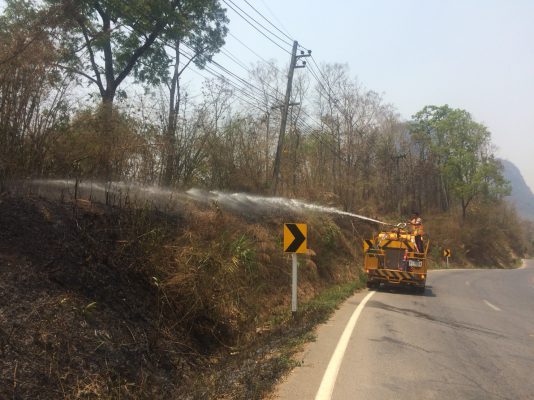14 เมษายน พ.ศ. 2562 ทางหลวงหมายเลข 107 ตอน แม่ทะลาย – หัวโท กม. 100+000 ด้านขวาทาง บริเวณ ตำบลปิงโค้ง อำเภอเชียงดาว จ.เชียงใหม่ ใกล้ 107 ตำบล ปิงโค้ง อำเภอ เชียงดาว เชียงใหม่ สาเหตุ ไฟป่าจากมือคน ได้รับแจ้งจากประชาชน สายด่วนกรมทางหลวง 1586 ว่ามีไฟป่าลุกไหม้บริเวณใกล้เขตทางหลวงและลุกลามเข้าในเขตทางหลวง รวมระยะทาง 500 เมตร นาย ชวัช ธิธรรม ผู้อำนวยการแขวงทางหลวง เชียงใหม่3 ได้สั่งการให้ หมวดการทางหลวงเชียงดาวเข้าทำการนำรถน้ำเข้าทำการดับไฟป่า ทางหัวหน้าการทางหลวงเชียงดาวจึงได้นำกำลังคนและรถน้ำเข้าควบคุมการลุกไหม้ ไม่ให้ลุกลามเข้ามาบริเวณข้างทางและยังอยู่ในระหว่างการปฏิบัติหน้าที่ ทรัพย์สินทางราชการไม่ได้รับความเสียหาย เป็นเพียงแต่ไฟไหม้เศษใบไม้และเศษต้นไม้แห้งที่อยู่ริมทางหลวง ซึ่งจากการสังเกตุน่าจะมาจากเศษก้นบุหรี่ที่คนสูบแล้วขว้างทิ้งข้างทางจึงเกิดไหม้ลุกลาม เพราะความมักง่าย แต่ก็ยากที่จะจับตัวได้เพื่อนำมาดำเนินคดีตามกฎหมาย ในห้วงวันหยุดสงกรานต์นั้นได้สั่งเจ้าหน้าที่และลูกจ้างไม่ให้หยุดแต่ต้องเฝ้าระวังไฟป่าและอุบัติเหตุที่เกิดบนท้องถนน ขอให้แต่ละหมวดทางหลวงดูแลในพื้นที่รับผิดชอบของตนเองให้ดีที่สุด ส่วนเรื่องไฟป่านั้นถ้าเกิดในพื้นที่ทางหลวงก็ดำเนินการช่วยเหลือไฟป่าได้ทันที เพราะเป็นการช่วยเหลือซึ่งกันและกัน และปีนี้ฝนไม่ตกลงมาเลยจึงทำให้ขอบเขตทางหลวงที่มีใบไม้แห้งสะสมอยู่มากจึงเกิดเป็นเชื้อเพลืงไฟป่าได้ง่าย ขอเตือนคนที่ขับรถสูบบุหรีทิ้งขว้างลงและเกิดลุกไหม้ถ้าจับได้ถูกดำเนินคดีตามกฏหมายทันที