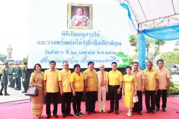 วันนี้(23 เม.ย.62) ที่บริเวณหน้าศาลเจ้าพ่อหลักเมือง อุทยานสัจจะและกตัญญู ศาลเจ้าพ่อหลักเมืองสุพรรณบุรี ชาวจังหวัดสุพรรณบุรี ร่วมพิธีเปิดอนุสาวรีย์และวางพวงดอกไม้รำลึกถึงเกียรติคุณ ฯพณฯ บรรหาร ศิลปอาชา อดีตนายกรัฐมนตรี ผู้มีคุณูปการแห่งการสร้างสรรค์และพัฒนาจังหวัดสุพรรณบุรี เป็นจำนวนมาก นำโดยนายนิมิต วันไชยธนวงศ์ ผวจ.สุพรรณบุรี หัวหน้าส่วนราชการ /พ่อค้า / พลังประชาชนและคุณหญิงแจ่มใส ศิลปอาชา เป็นประธานในพิธี สำหรับอนุสาวรีย์ดังกล่าวได้มีพิธีเชิญรูปปั้น นายบรรหาร ขึ้นสู่ฐานอนุสรณ์สถานเมื่อเดือนสิงหาคม 2561 ที่ผ่านมา