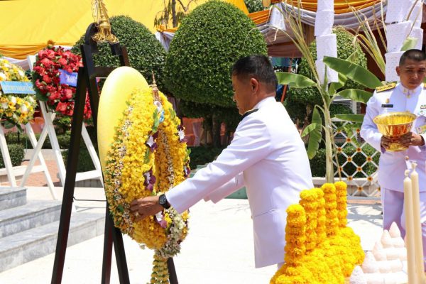 ผู้แทนพระองค์วางพวงมาลาถวายราชสักการะสมเด็จพระนเรศวรมหาราช ที่อำเภอดอนเจดีย์ ประจำปี 2562