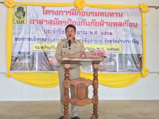 วันที่ 25 เมษายน พ.ศ. 2562 เวลา 09.00 น. นายธนูศักดิ์ เสมอภาค นายอำเภอลืออำนาจ จังหวัดอำนาจเจริญ เปิดโครงการฝึกอบรมทบทวนอาสาสมัครป้องกันภัยฝ่ายพลเรือน ประจำปี 2562 ของ อบต.ไร่ขี