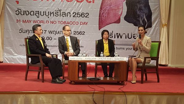 นายแพทย์แดเนียล เคอร์เทสซ์ ผู้แทนองค์การอนามัยโลกประจำประเทศไทย กล่าวว่า “การสูบบุหรี่ทำให้ประชาชนโดยเฉพาะเยาวชนและคนยากจนเสี่ยงต่อการเสพติดนิโคตินไปตลอดชีวิต การสูบบุหรี่ส่งผลทำให้คนเสียชีวิตก่อนวัยอันควรจากโรคมะเร็ง โรคหลอดเลือดสมอง โรคหัวใจวาย และโรคปอด เราเรียนรู้จากประสบการณ์ของหลาย ๆ ประเทศทั่วโลกว่าการขึ้นภาษีบุหรี่นั้น เป็นวิธีการที่มีประสิทธิภาพที่สุดในการป้องกันและทำให้คนเลิกสูบบุหรี่ องค์การอนามัยโลกขอแนะนำว่าระบบการเก็บภาษีบุหรี่แบบอัตราเดียวนั้น ดีกว่าแบบสองอัตรา ซึ่งอาจจะทำให้นักสูบหันไปใช้บุหรี่ที่มีราคาถูกกว่าได้ เช่น จากที่บุหรี่ที่ขายราคา 60 บาทหรือต่ำกว่า คิดอัตราภาษีร้อยละ 20 ตามมูลค่า และบุหรี่ที่ขายอัตราเกินซองละ 60 บาท อัตราภาษีร้อยละ 40 ควรจะเป็นอัตราเดียวที่ร้อยละ 40 ของบุหรี่ทุกราคา”