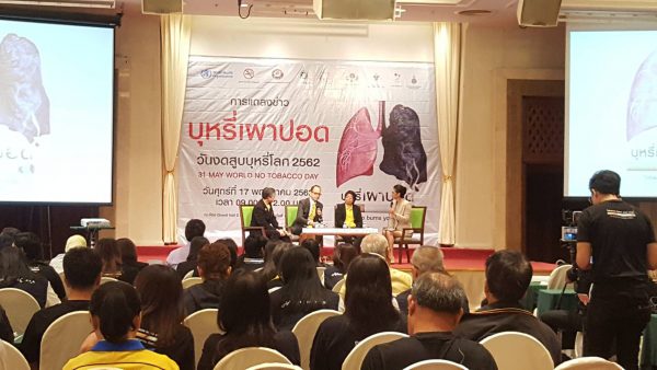 เมื่อวันที่ 17 พฤษภาคม 2562 ที่ห้องแกรนด์ฮอลล์ 2 ชั้น 2 โรงแรมรามาการ์เด้นส์ ถนนวิภาวดี -รังสิตกรุงเทพฯ มูลนิธิรณรงค์เพื่อการไม่สูบบุหรี่ โดยศาสตราจารย์ นายแพทย์ ประกิต วาทีสาธกกิจ เลขาธิการมูลนิธิรณรงค์เพื่อการไม่สูบบุหรี่ ร่วมกับ องค์การอนามัยโลกประเทศไทย นายแพทย์ แดเนียล เคอร์เทสซ์ ผู้แทนองค์การอนามัยโลกประจำประเทศไทย พร้อมด่วยภาคีเครือข่ายควบคุมยาสูบ โดยการสนับสนุนของ สำนักงานกองทุนสนับสนุนการสร้างเสริมสุขภาพ (สสส.) จัด สัมมนาและแถลงข่าว Tobacco burns your lungs “บุหรี่เผาปอด” ณ ห้อง Grand Hall 2 โรงแรมรามาการ์เด้นส์ ถนนวิภาวดีรังสิต โดยมีเครือข่ายสื่อมวลชนทุกแขนงจาก 4 ภาคกว่า100ท่าน ของประเทศไทย ร่วมสัมมนา และหลักการแถลงข่าว