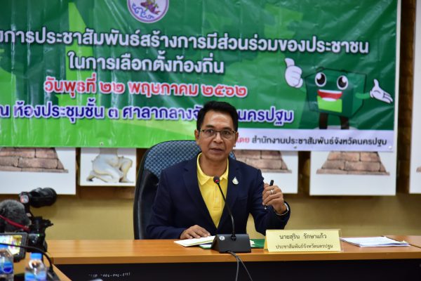 วันที่ 22 พฤษภาคม 2562 ที่ห้องประชุมศาลากลางจังหวัดนครปฐม นายสุริน รักษาแก้ว ประชาสัมพันธ์จังหวัดนครปฐม เป็นประธานเปิดสัมมนาโครงการประชาสัมพันธ์การมีส่วนร่วมของประชาชนในการเลือกตั้งท้องถิ่น โดยมีสื่อมวลชนทุกแขนง เครือข่ายประชาสัมพันธ์ เข้าร่วมสัมมนา เพื่อส่งเสริมให้ประชาชนได้ร่วมกันพัฒนาท้องถิ่นตนเองและเป็นการกระจายโอกาสให้แก่ประชาชนในการพัฒนาถิ่นฐานบ้านเกิด ตลอดจนจัดการบริการสาธารณะและพัฒนาคุณภาพชีวิตของประชาชนในท้องถิ่น รวมทั้งเพื่อให้ประชาชนพึ่งตนเองได้มากขึ้น และนำไปสู่การลดความเหลื่อมล้ำทางสังคมและเศรษฐกิจ นอกจากนี้เพื่อให้ทุกภาคได้มีส่วนร่วม และให้ความร่วมมือในการเลือกตั้งท้องถิ่นให้มีความสุจริตและเที่ยงธรรม