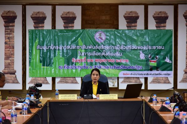 สำนักงานประชาสัมพันธ์จังหวัดนครปฐม จัดสัมมนาโครงการประชาสัมพันธ์การมีส่วนร่วมของประชาชนในการเลือกตั้งท้องถิ่น เพื่อส่งเสริมให้ประชาชนได้ร่วมกันพัฒนาท้องถิ่นตนเองและเป็นการกระจายโอกาสให้แก่ประชาชนในการพัฒนาถิ่นฐานบ้านเกิด