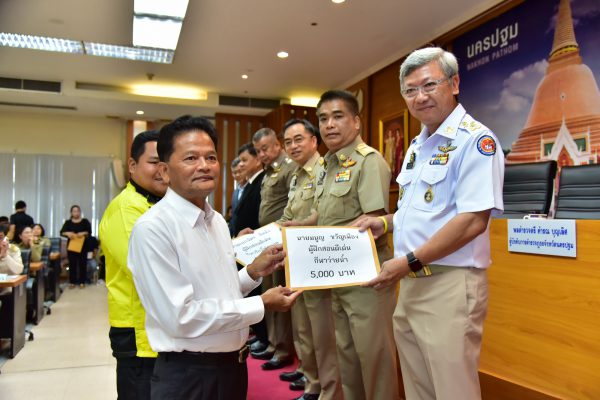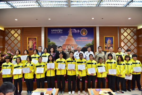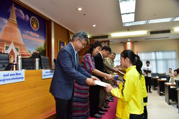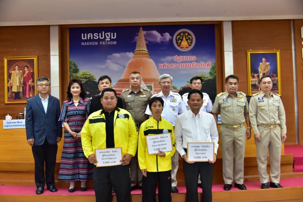 เมื่อวันที่ 29 พ.ค. 62 ที่ห้องประชุมศาลากลางจังหวัดนครปฐม นายชาญนะ เอี่ยมแสง ผู้ว่าราชการจังหวัดนครปฐม พร้อมด้วย รองผู้ว่าราชการจังหวัดนครปฐม กรรมการบริหารบริษัทเทพผดุงพรมะพร้าว จำกัด ผู้ช่วยกรรมการบริษัทโรงหมี่ชอเฮ็ง จำกัด และรองประธานกรรมการผู้จัดการกลุ่มบริษัทยางโอตานิ จำกัด มอบเงินค่าเหรียญรางวัลนักกีฬาในการแข่งขันกีฬาเยาวชนแห่งชาติ ครั้งที่ 35 บุรีรัมย์เกมส์ ให้แก่นักกีฬา ที่ได้สร้างชื่อเสียงให้กับจังหวัดนครปฐม 41 ราย และมอบเงินให้กับผู้ฝึกสอน 3 ราย