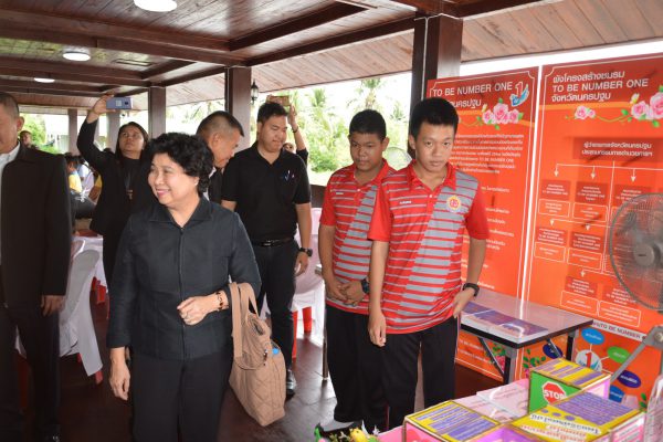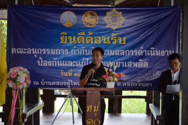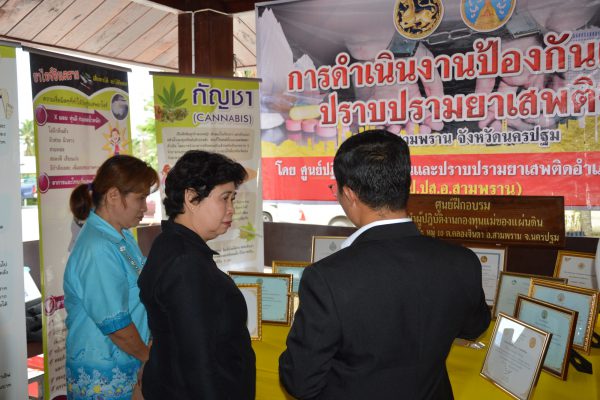 จากนั้นในเวลา 13.00 น. นายธนาคม จงจิระ รองปลัดกระทรวงมหาดไทย มอบหมายนางอัจฉรา แก้วกำชัยเจริญ หัวหน้าผู้ตรวจกระทรวงแรงงาน พร้อมคณะ ลงพื้นที่ตรวจเยี่ยมการดำเนินงานแก้ไขปัญหาผู้เสพ/ผู้ติดยาเสพติดโดยใช้ชุมชนเป็นศูนย์กลาง (CBTx) ณ บ้านคลองผู้ใหญ่โต๊ะ ม.10 ต.คลองจินดา อำเภอสามพราน จังหวัดนครปฐม โดยมีนายยงยุทธ สวนทอง นายอำเภอสามพราน พร้อมด้วย กำนัน ผู้ใหญ่บ้าน กรรมการหมู่บ้าน คณะกรรมการกองทุนแม่ของแผ่นดิน ม.10 ชมรม To be Number โรงเรียนสามพรานวิทยา ศูนย์ฝึกและอบรมเด็กและเยาวชนหญิงบ้านปรานี ร่วมต้อนรับ และนายมงคล กวยรักษา ผู้ใหญ่บ้านหมู่ที่ 10 นำเสนอผลการดำเนินงานการแก้ไขปัญหาผู้เสพ/ผู้ติดยาเสพติดโดยใช้ชุมชนเป็นศูนย์กลาง (CBTx)โดยกระบวนการของกลไกกองทุนแม่ของแผ่นดินและกระบวนการชุมชนเข้มแข็ง 9 ขั้นตอน ตลอดจนการบูรณาการร่วมกับภาครัฐ ได้แก่ สาธารณสุข และฝ่ายปกครองในการดูแลผู้เสพยาเสพติด และการสร้างชุมชนเข้มแข็งปลอดยาเสพติดอย่างยั่งยืน